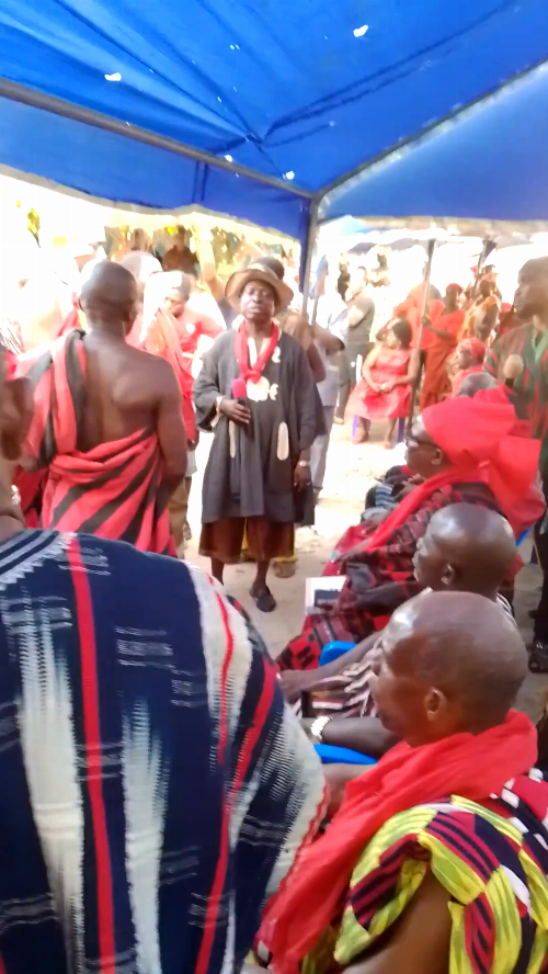 The father of the chief of Kpodzahon is giving oath in front of the chief of Apegame:2022
